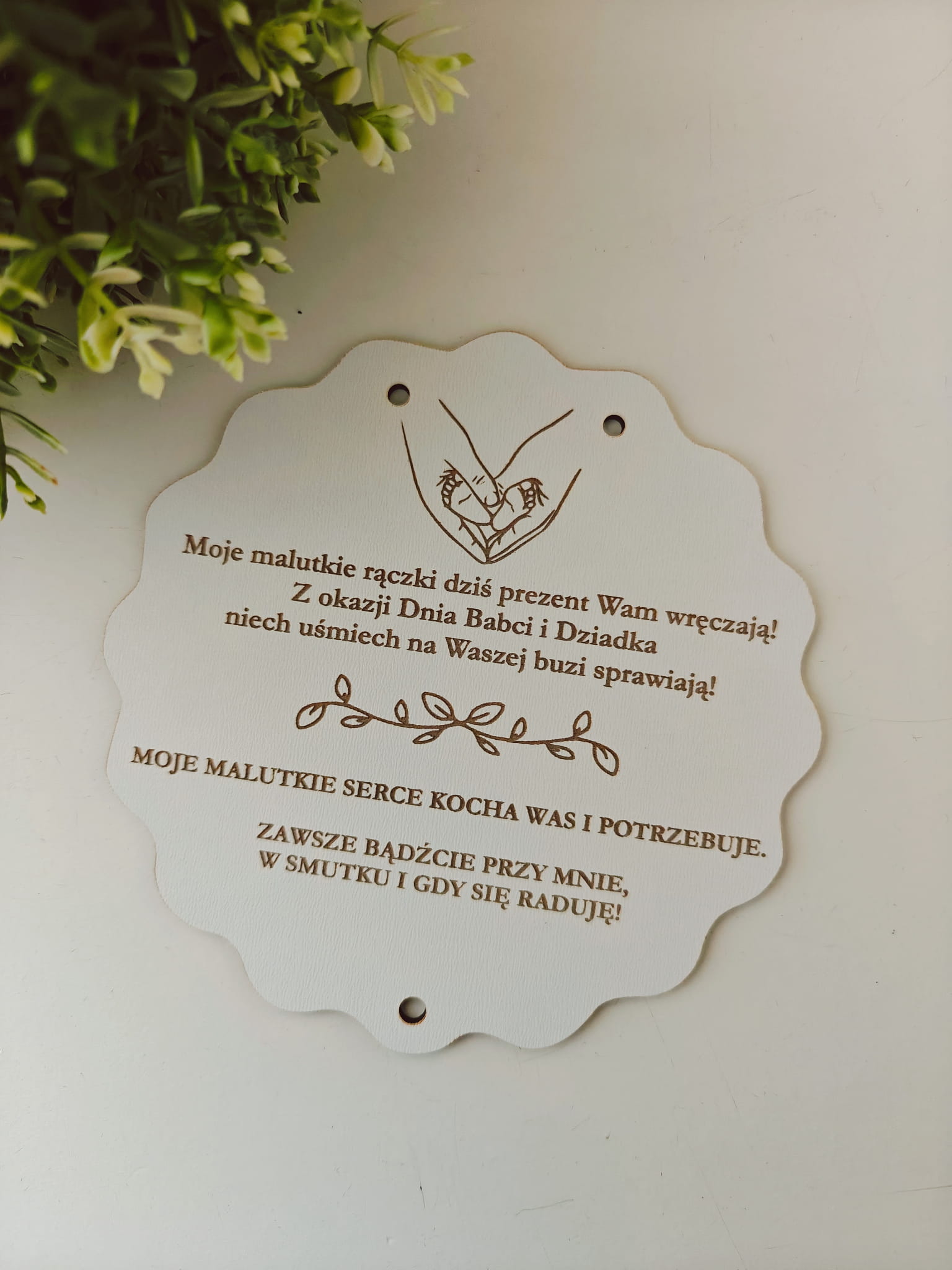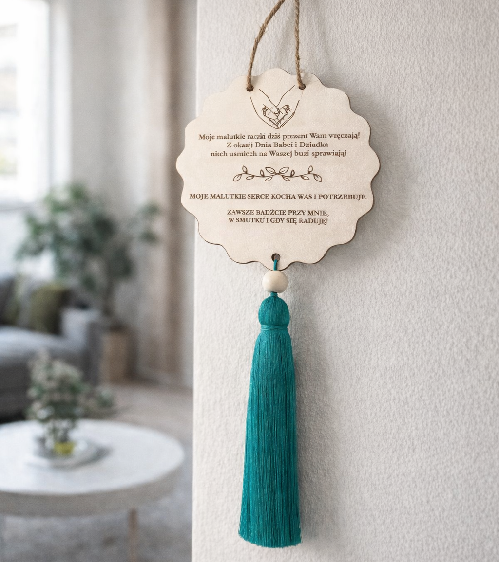 Personalizowana tabliczka dla Babci i Dziadka to wyjątkowy prezent, który łączy prostotę, naturalne materiały i piękne przesłanie płynące prosto z serca dziecka. Doskonale sprawdzi się jako pamiątka na Dzień Babci i Dziadka lub inną wyjątkową okazję.