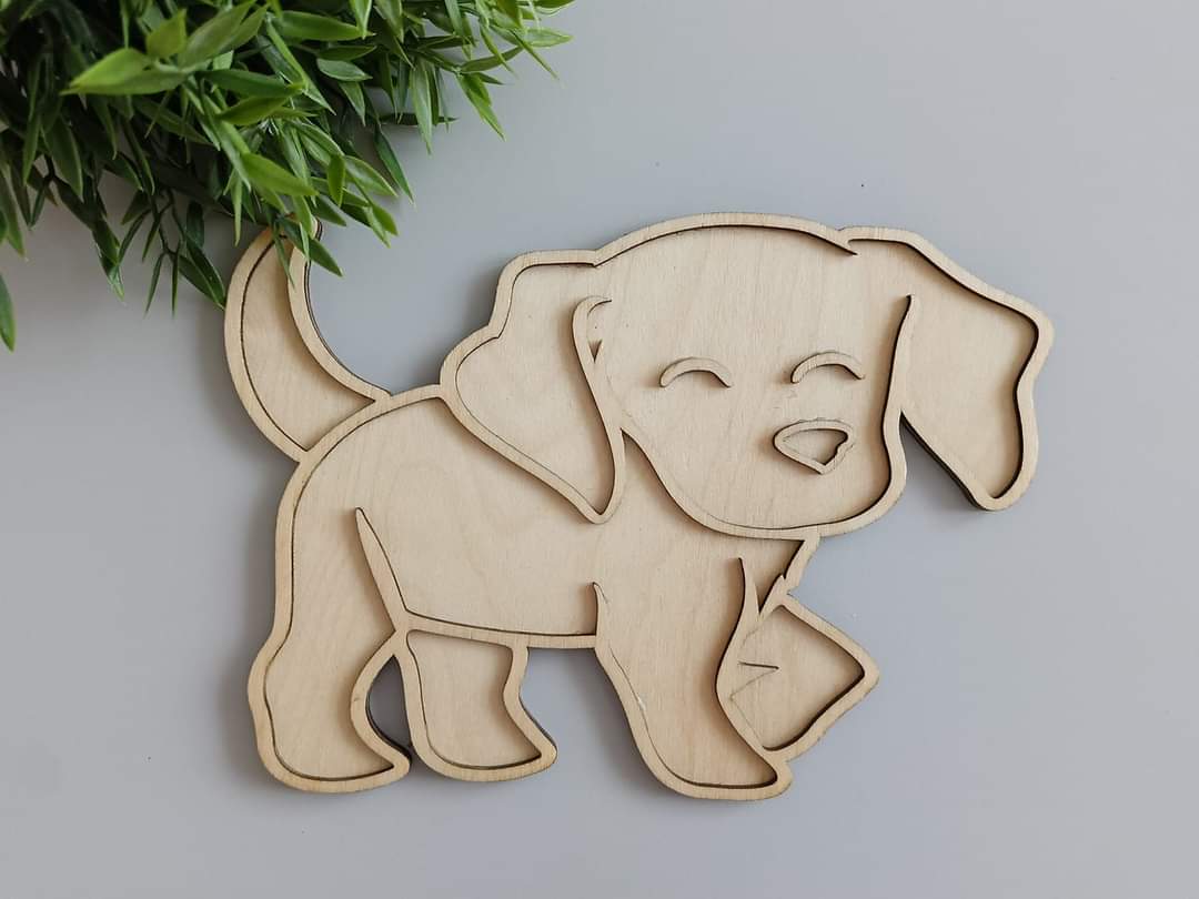 Piesek wzór 2- drewniana wysypywanka sensoryczna