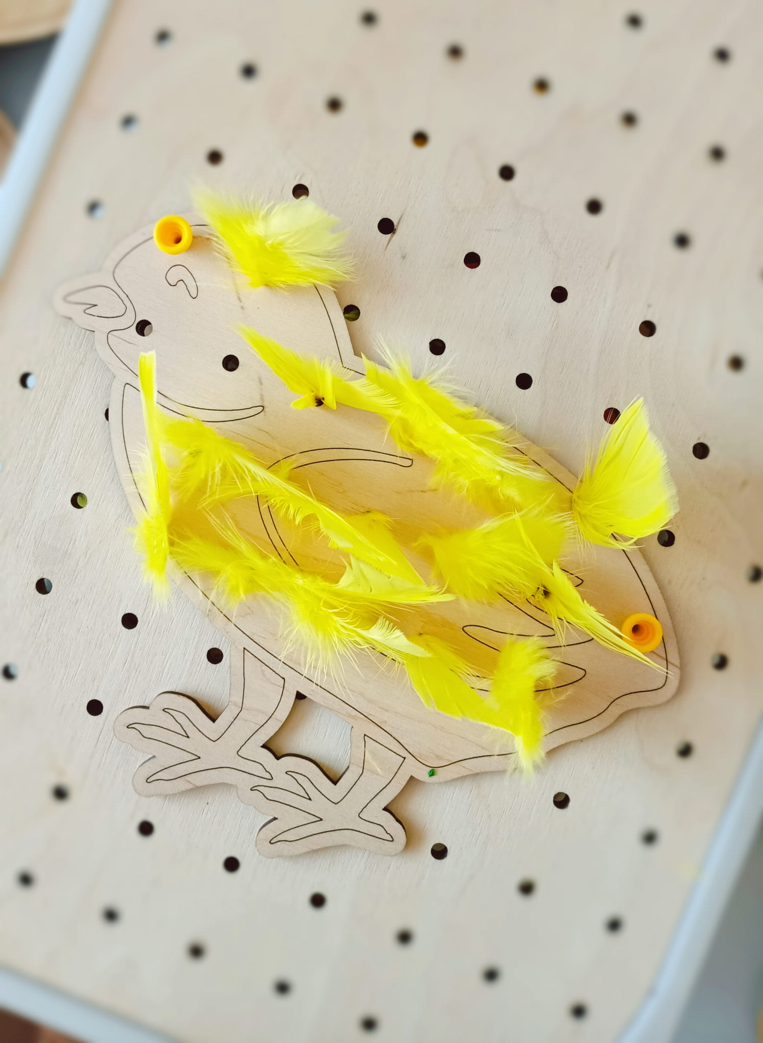 Szablon można wykorzystać z tablicą maxi z wieloma otworami , aby dodatkowo urozmaicić zabawę z tablicą oraz tworzyć kreatywne wzory. Wystarczy położyć szablon na tablicy i w dwóch miejscach zabezpieczyć gwoździkiem, tak aby szablon się nie przesuwał, a następnie wykorzystać np. druciki kreatywne, kolorowe piórka, gałązki, makaron itp. do ozdabiania szablonów.
