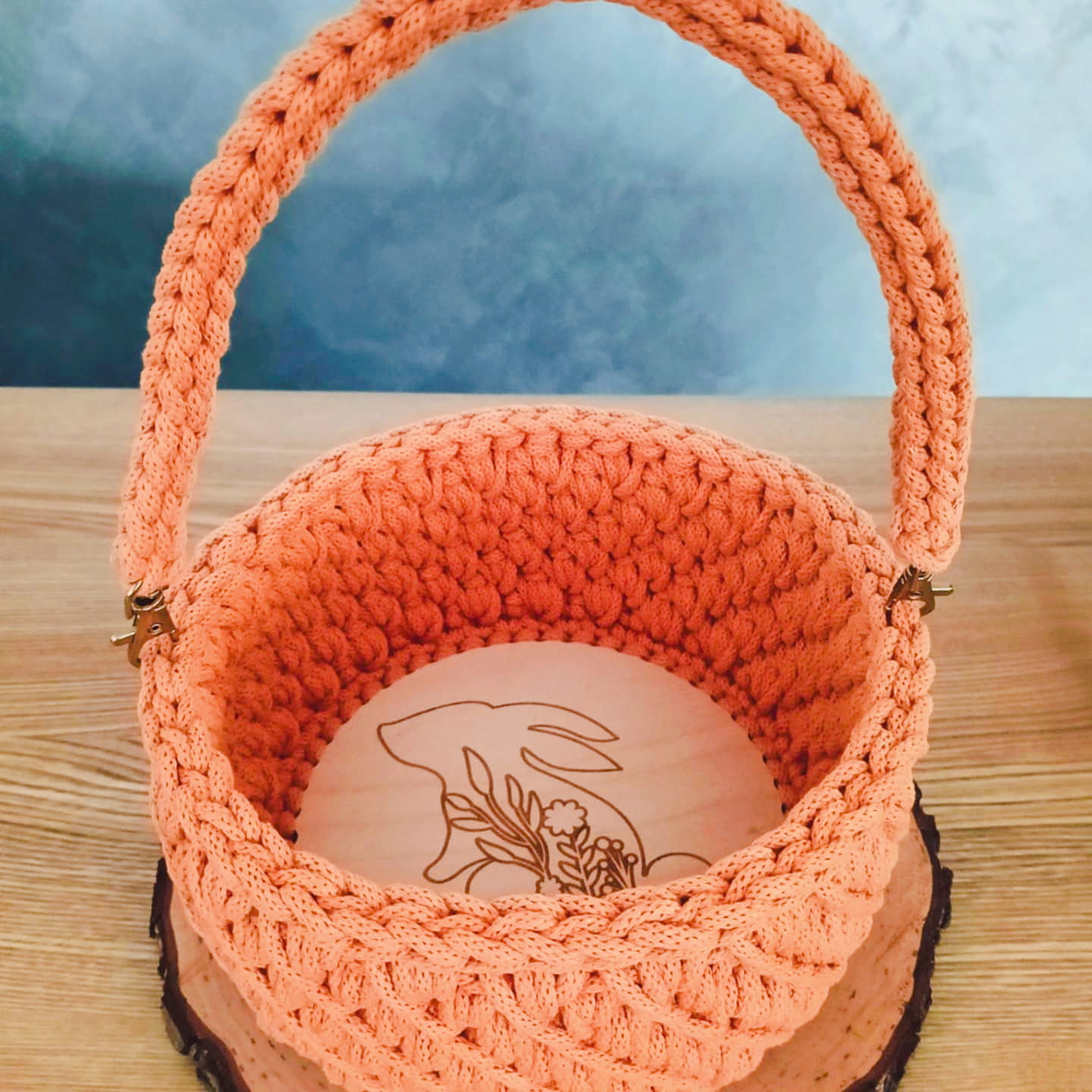 Pleciony ze sznurka koszyczek wielkanocny ścieg skośny - ręcznie wykonany z grawerem