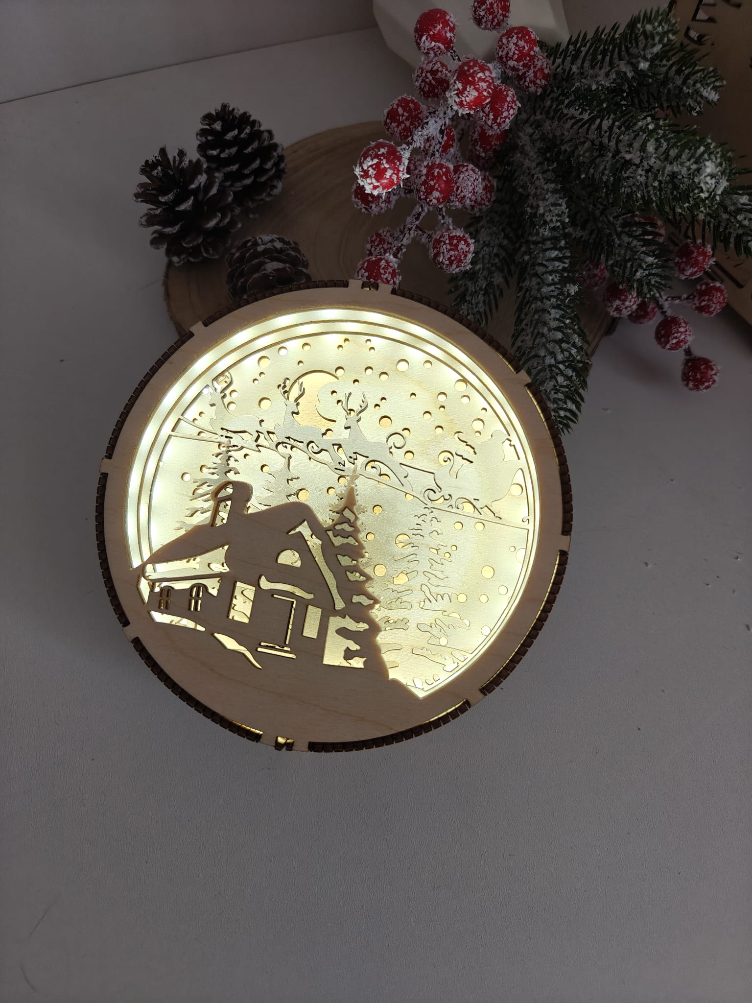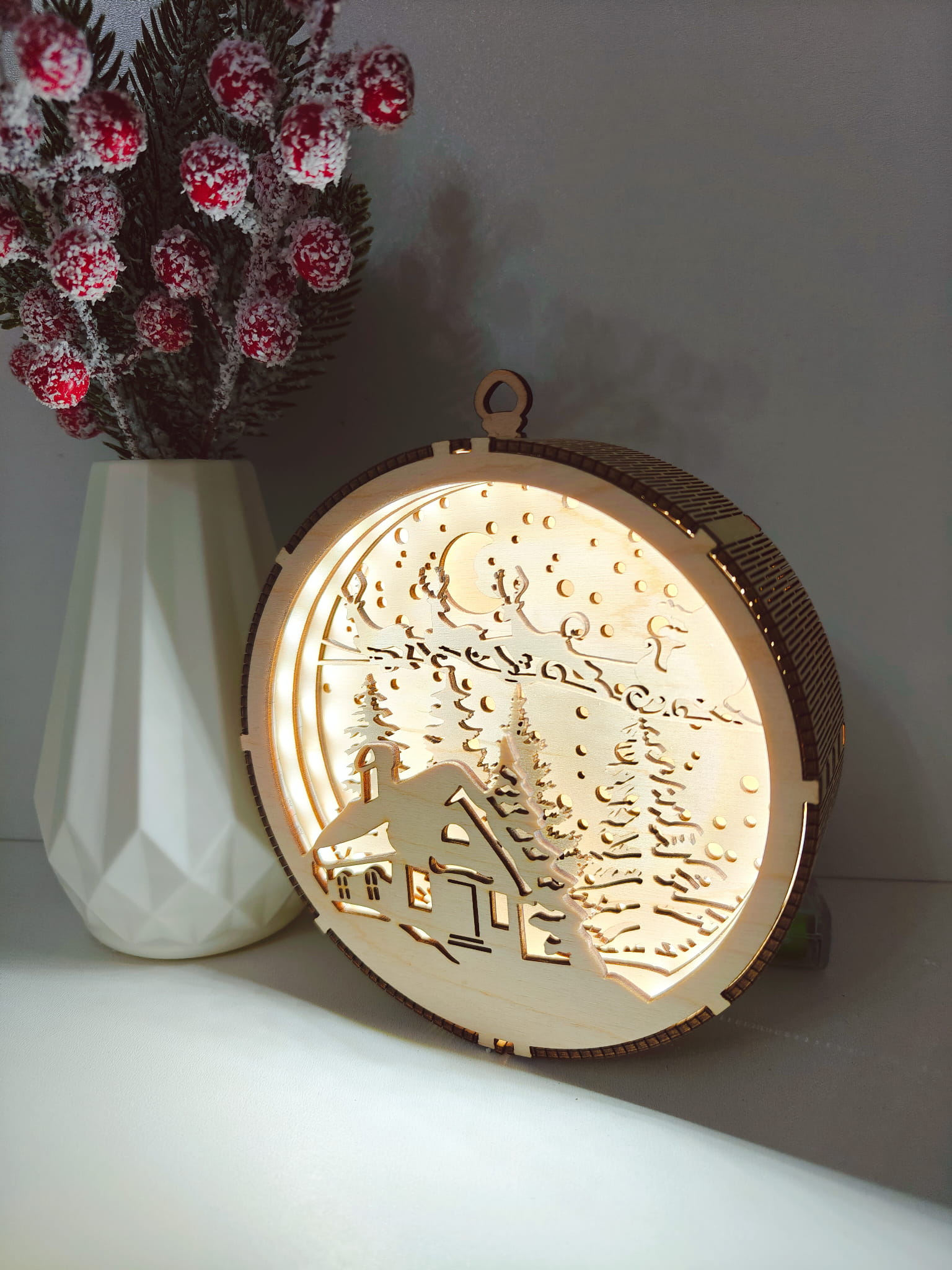 Elegancka, podświetlana bombka LED wykonana ze sklejki to wyjątkowa dekoracja świąteczna, która wprowadza do wnętrza ciepły i nastrojowy klimat. Ażurowy wzór w połączeniu z światłem LED tworzy efekt subtelnej iluminacji.