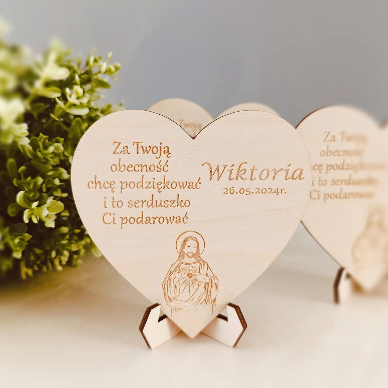Personalizowane podziękowanie dla gości na Komunię Świętą to wyjątkowy upominek, który będzie piękną pamiątką z tego ważnego dnia. Wykonane z wysokiej jakości sklejki lub jednostronnie białej płyty HDF, z możliwością wyboru wariantu: ze stojakiem lub z magnesem.
