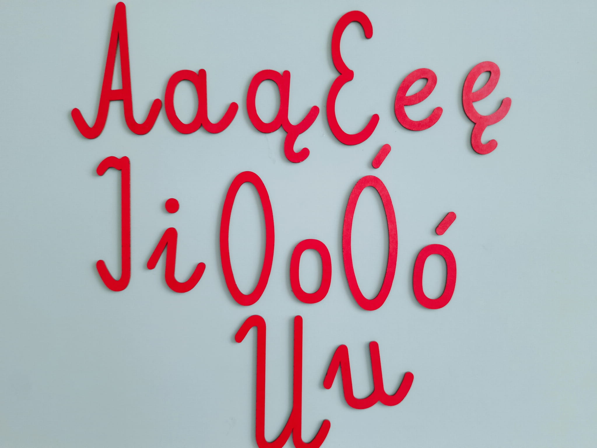 Alfabet ruchomy Montessori malowany - litery pisane- czcionka Elementarz Dwa.