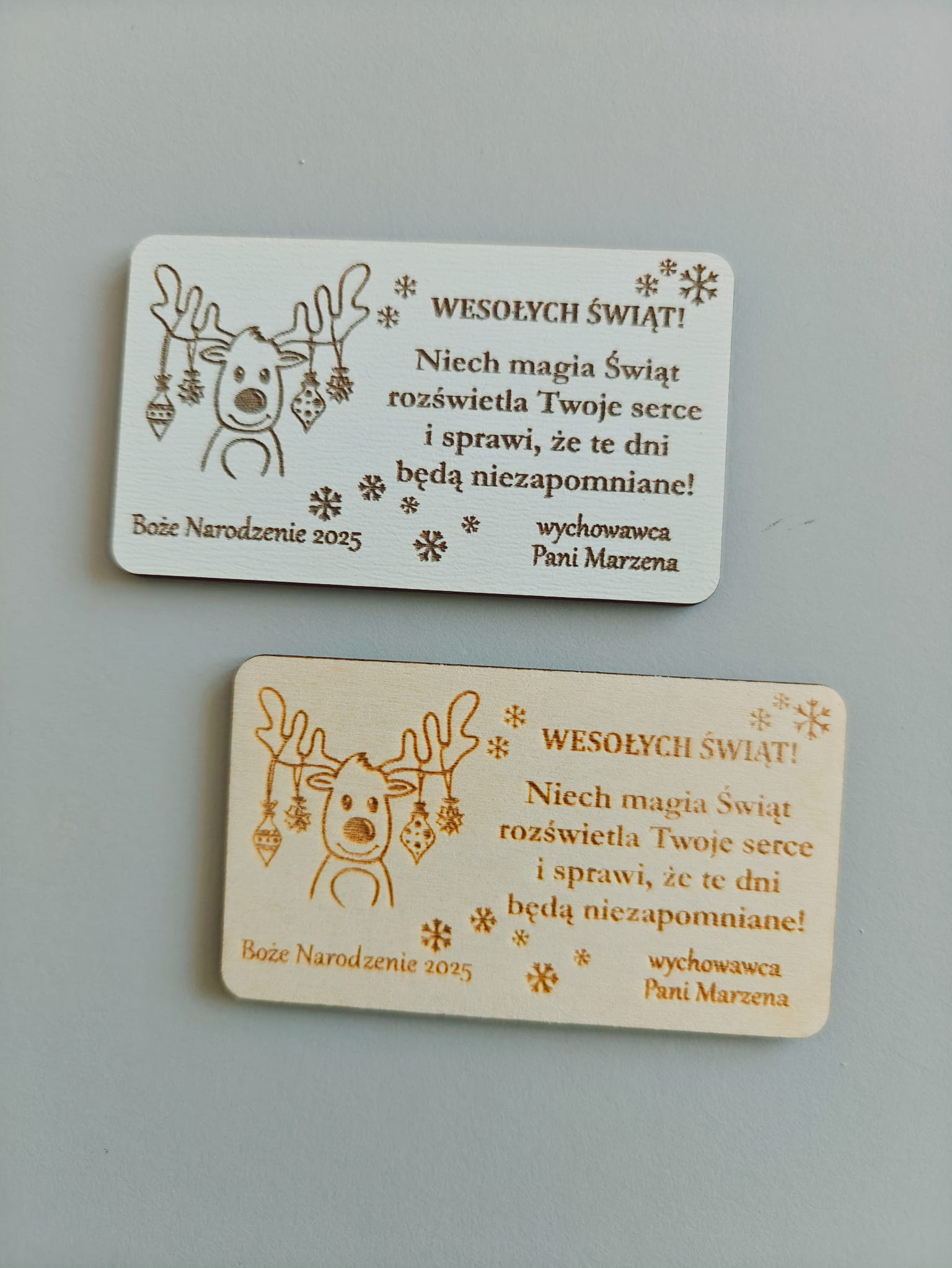 Świąteczne wzory w połączeniu z indywidualnym tekstem sprawiają, że magnes będzie wyjątkową pamiątką na długie lata – można go umieścić na lodówce, tablicy magnetycznej czy innej metalowej powierzchni.