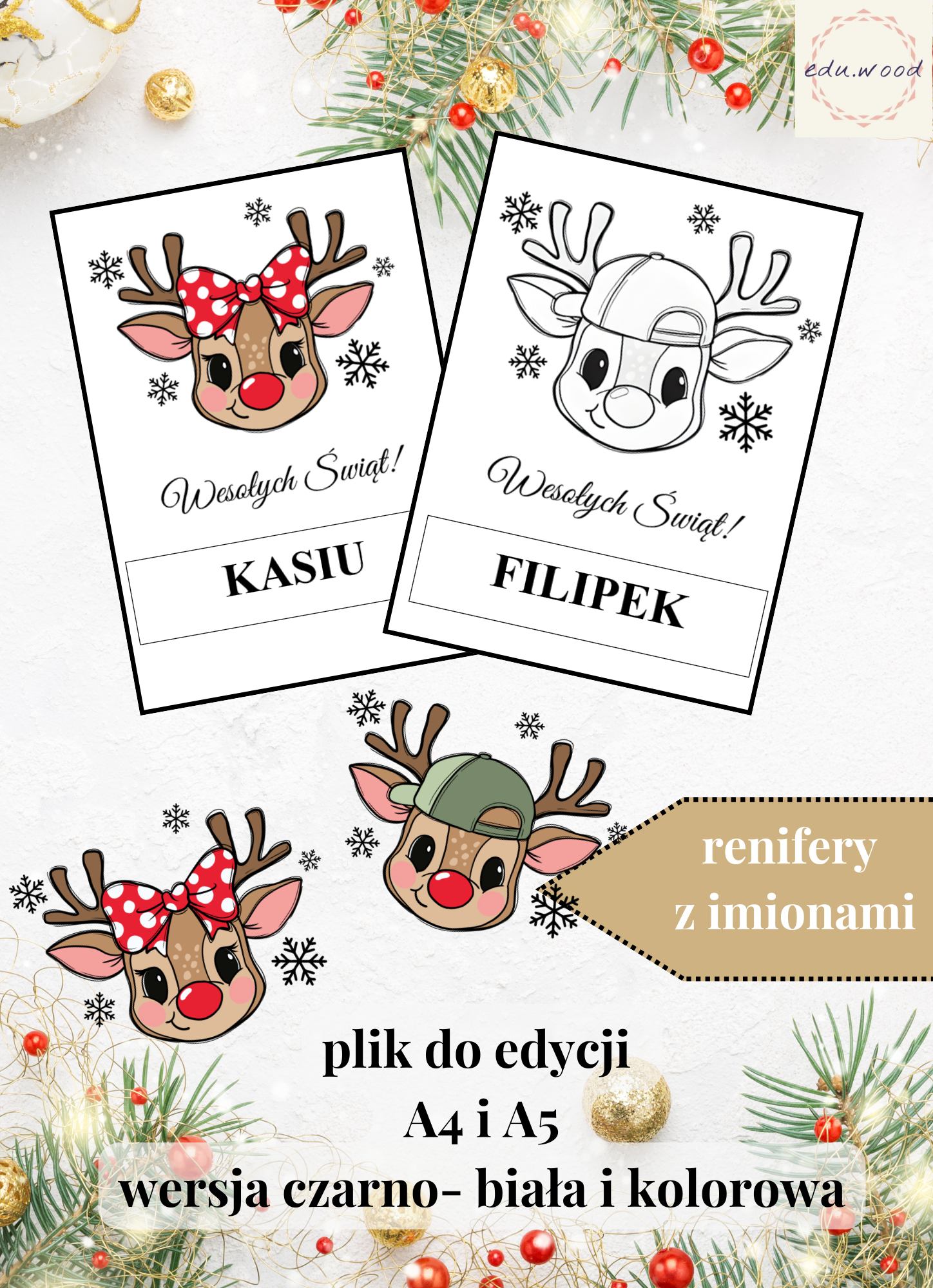 Renifery z imionami do edycji