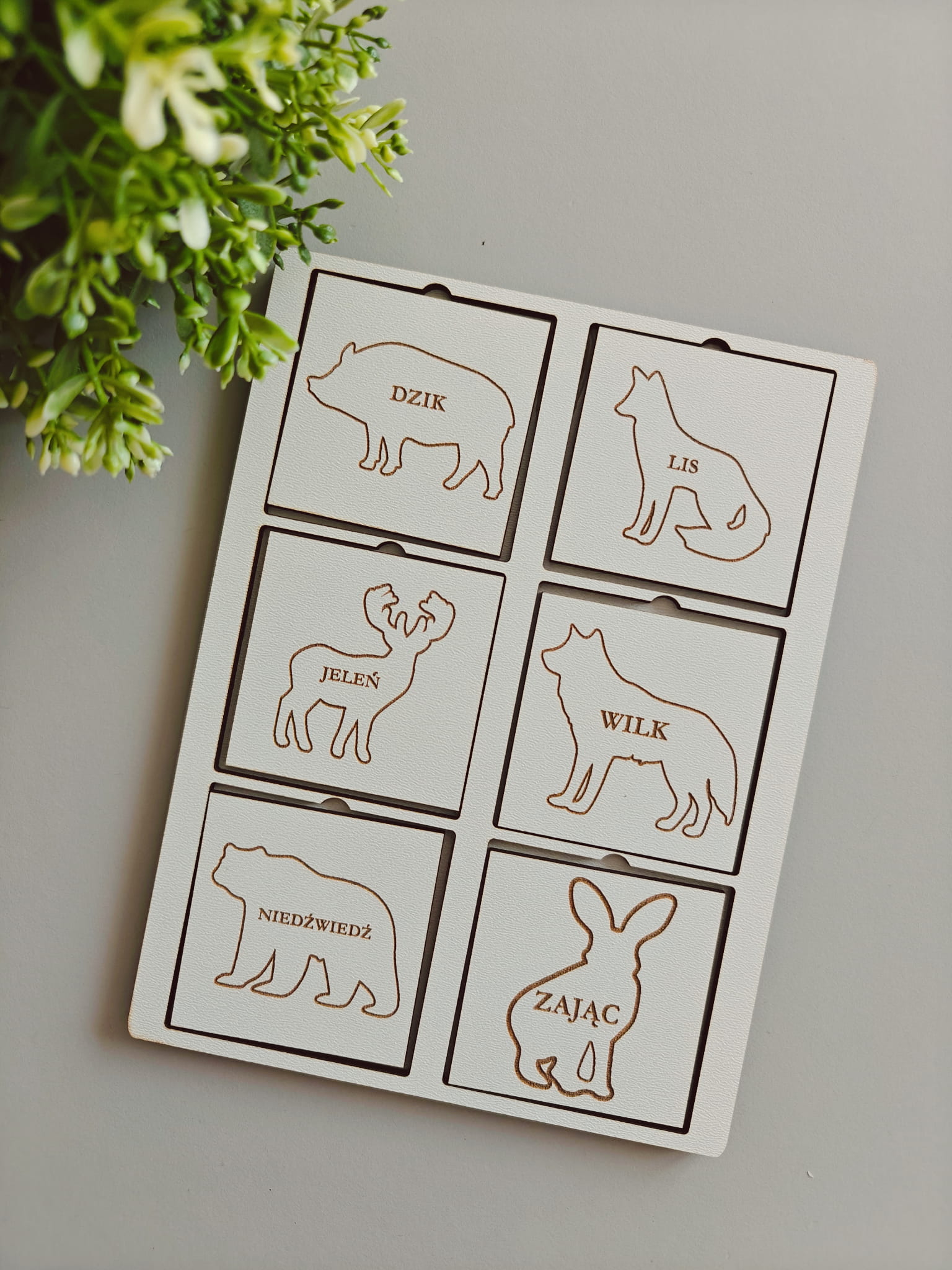 Tropy zwierząt - drewniana układanka edukacyjna dla dzieci