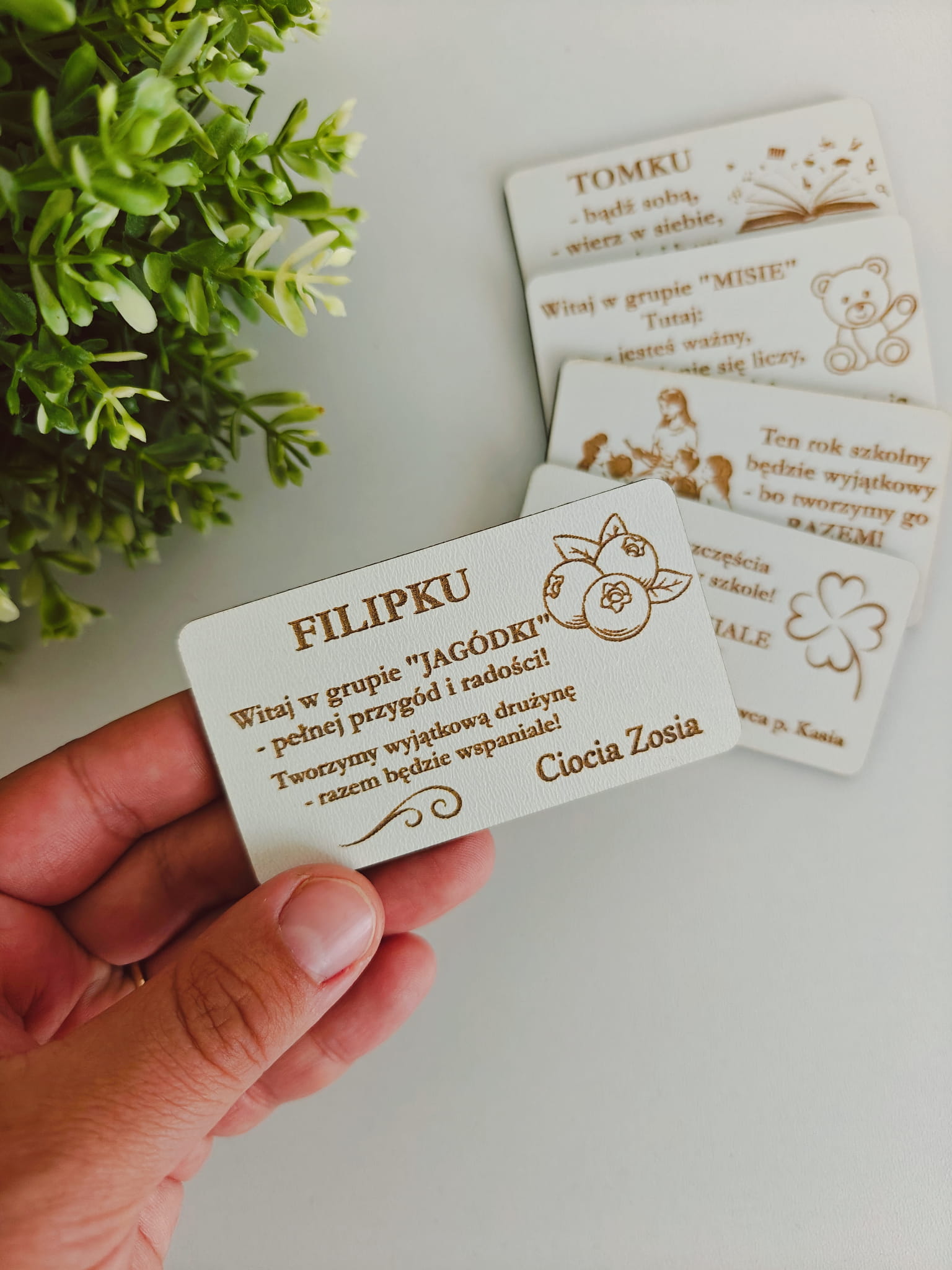 Rozpocznij nowy rok szkolny w ciepły, wyjątkowy sposób! Drewniany magnes z imieniem dziecka oraz grafiką nawiązującą do nazwy grupy przedszkolnej lub żłobkowej to piękna pamiątka i miły gest powitania od nauczyciela lub opiekuna.