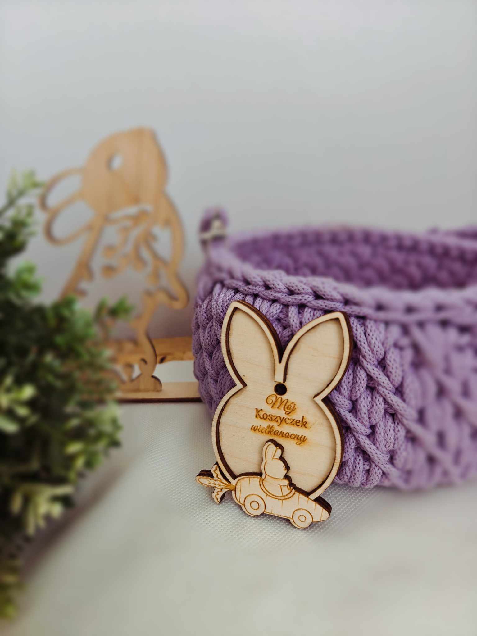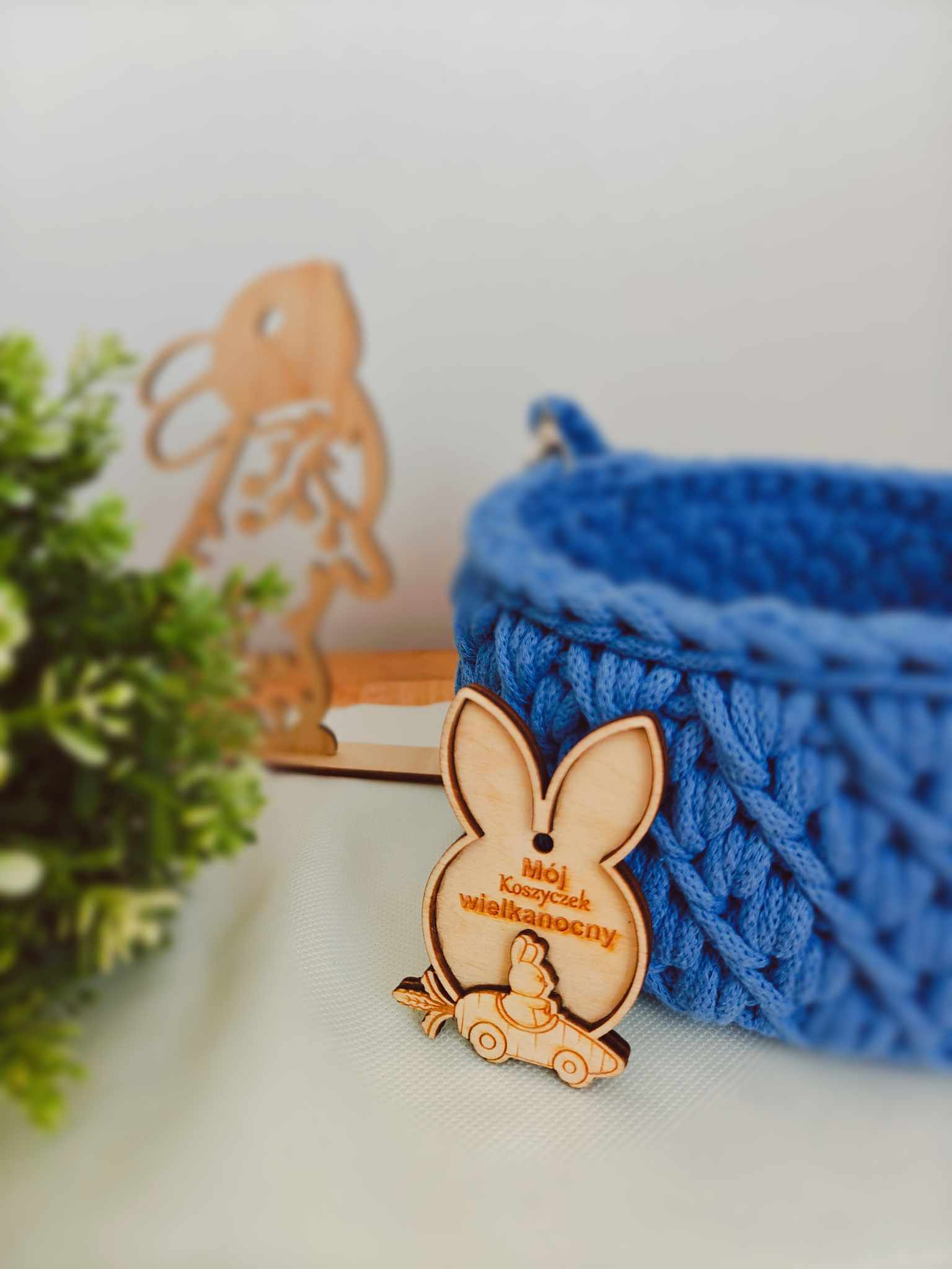 Dodaj wyjątkowy akcent do swojego wielkanocnego koszyczka dzięki personalizowanej drewnianej zawieszce w kształcie uszu króliczka! Wykonana z wysokiej jakości sklejki, z delikatnym motywem oraz możliwością wygrawerowania dowolnego imienia lub krótkiego napisu.