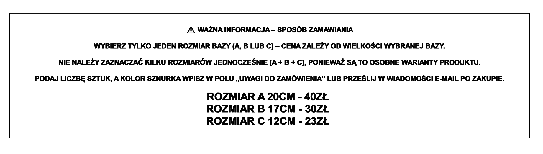 zamówienia wpisz kolor sznurka. UWAGA! W przypadku braku dostępności wybranego koloru sznurka w hurtowni skontaktujemy się z Tobą w ciągu 48h od opłacenia zamówienia z informacją o braku dostępności wybranego koloru i z prośbą o wybranie innego koloru.
