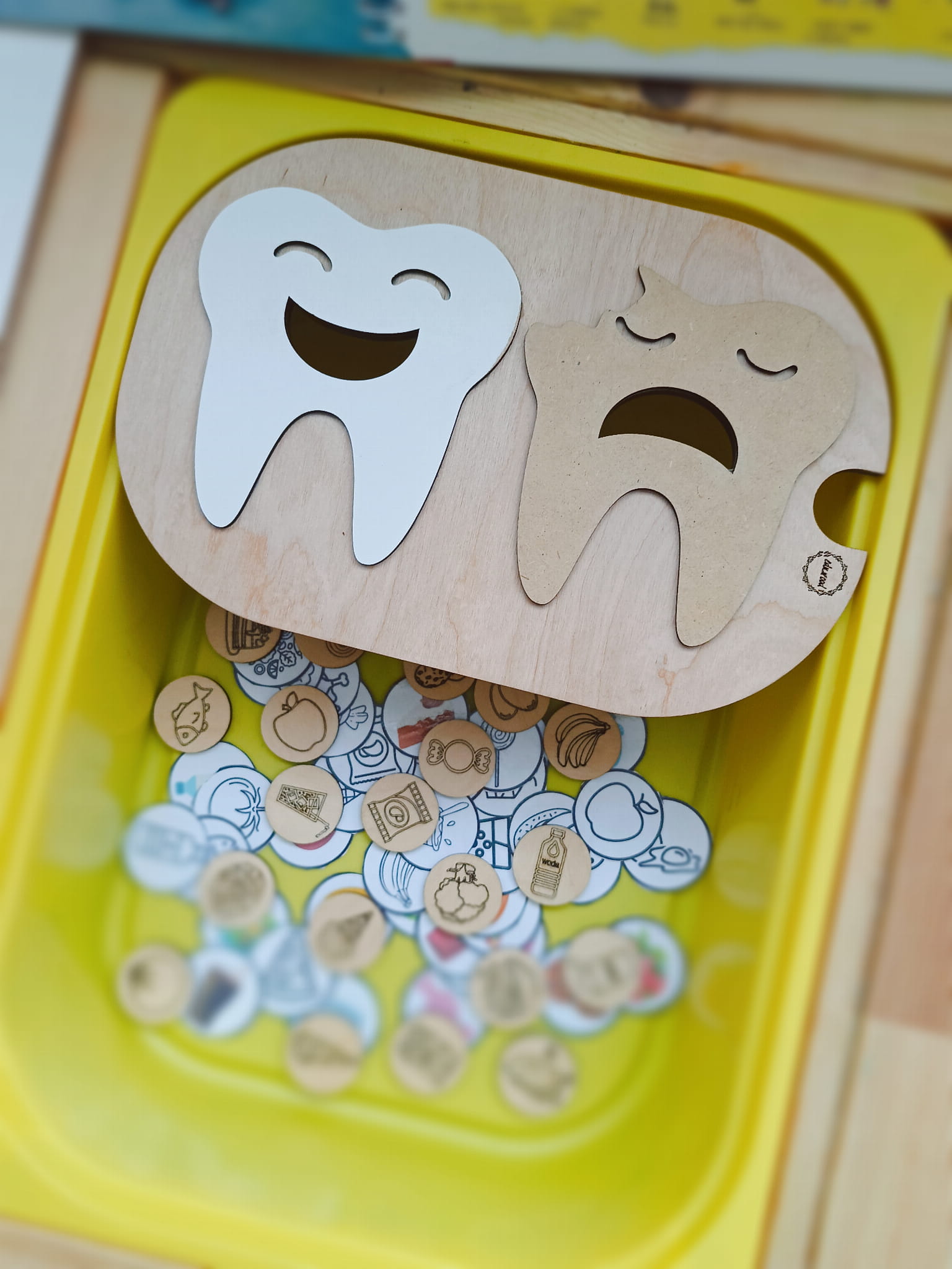 Zdrowe ząbki z akcesoriami. Mała wkładka do stolika Ikea Flisat