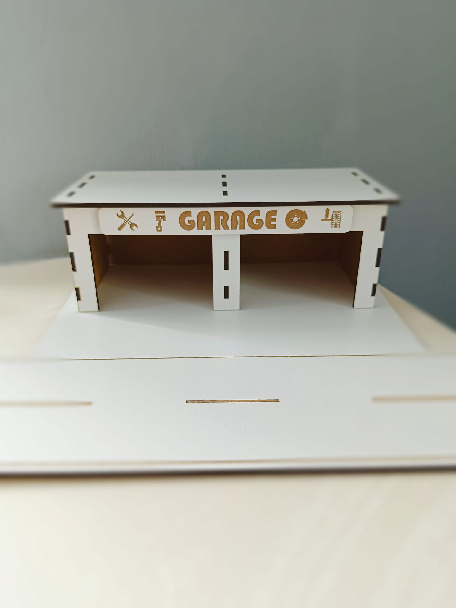 Elementy budynków (sklep, warsztat, stacja paliw, most oraz znaki drogowe) są wysyłane do samodzielnego złożenia. W zestawie znajduje się klej do ewentualnego sklejenia tych elementów.