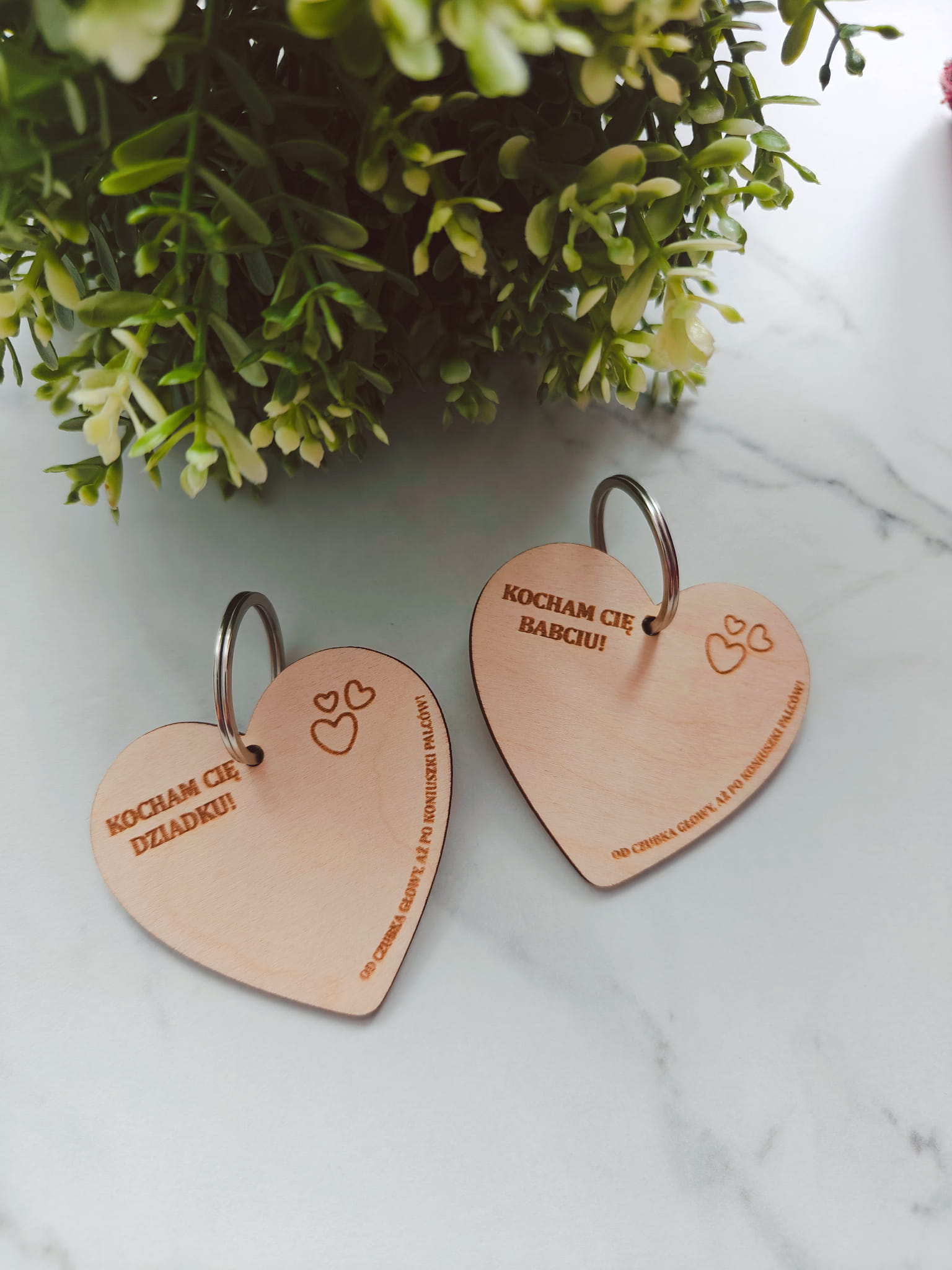 Każde serce zawiera gotowy napis (np. „Kocham Cię Babciu”, „Kocham Cię Dziadku”) oraz specjalne miejsce na wykonanie odcisku palca dziecka – można użyć do tego farby plakatowej. To prosty gest, który zamienia produkt w osobistą, wzruszającą pamiątkę.